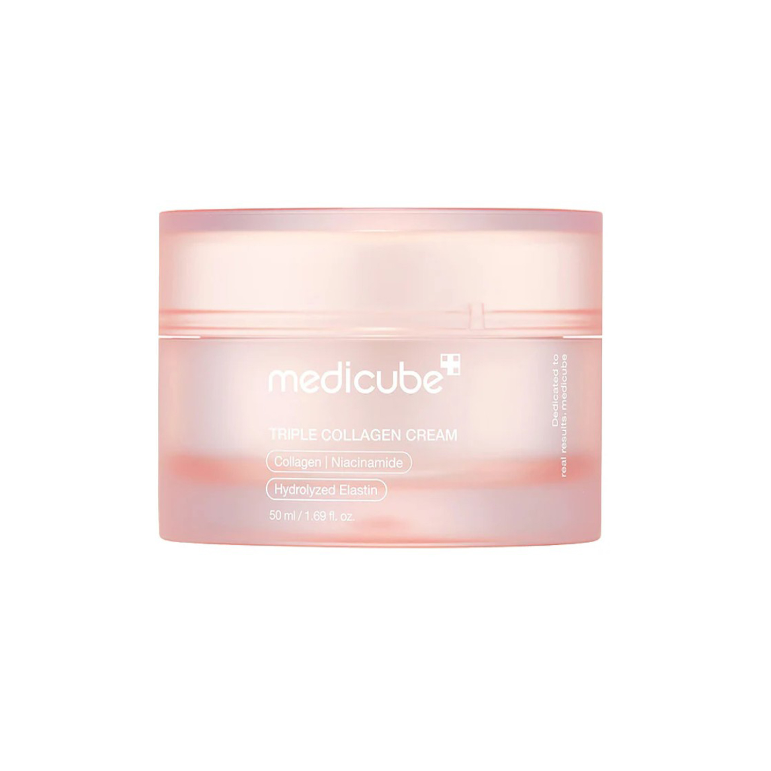 A Medicube Triple Collagen Cream é um creme facial intensivo desenvolvido para melhorar a firmeza, elasticidade e hidratação da pele. Sua fórmula avançada combina três tipos de colágeno, que atuam em diferentes camadas da pele, promovendo um efeito antienvelhecimento visível e duradouro.